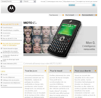 Ce post ne fait pas preuve d’une finesse extrême, j’en convient, mais après la gaffe du macbook « parfaitement con » (ici), voici Motorola qui teste la même solution pour buzzer…Sur la page de présentation du Moto Q, admirer la sublime prestation du copywriter: « Mon Q. L’intelligence renouvelée »…..