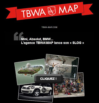 Hybride entre un « Site » émetteur pour injecter de la créativité sur le Web et un « bLOG » plateforme d’échange, le SLOG des collègues de TBWA\MAP se conçoit comme un carrefour de créativités et de tendances qui montre comment les idées naissent et se fabriquent, qui supprime la frontière entre les idées, entre les médias, entre le monde de l’art et celui du marché, entre la culture pop et la culture d’élite, entre l’overground et l’underground… Parce que les idées peuvent surgir n’importe où.